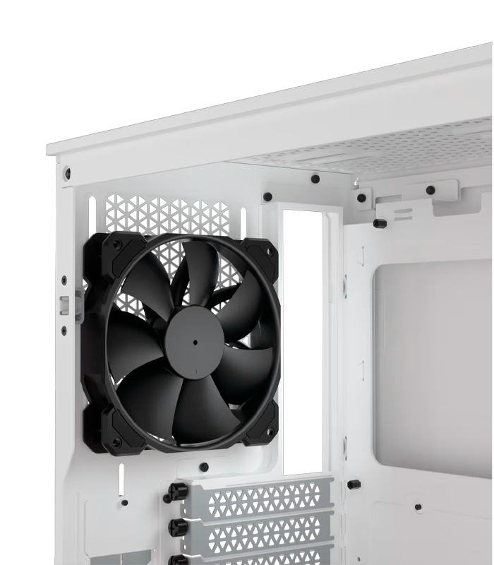El CORSAIR 4000D AIRFLOW es un chasis ATX semitorre distintivo, optimizado para disponer de un elevado caudal de aire, con una sencilla gestión del cableado y dos ventiladores CORSAIR AirGuide de 120 mm incluidos para que la refrigeración sea excepcional.